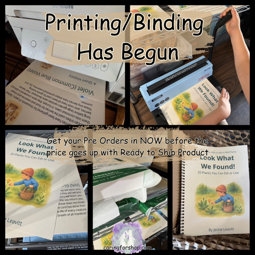 Each book is printed and bound right here at Caring For — by hand, with care — to bring you resources that inspire natural learning, family connection, and everyday herbal living.